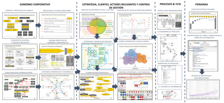 Nuestros servicios están enfocados en generar valor a los clientes: desde el Gobierno Corporativo, la Estrategia del Negocio y la implementación de un conjunto de iniciativas claves de alto impacto.